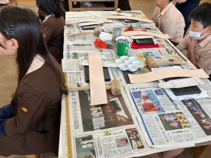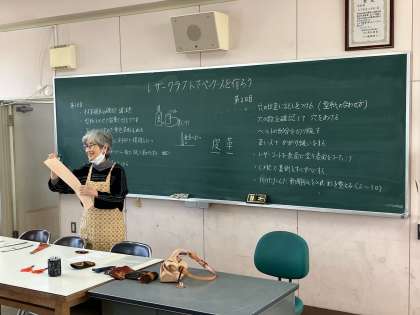 地域の老人会の方々に指導を受けて、皮製品をつくります。