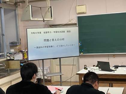 先生方の研修会です。全国学力テストの問題分析をしました。