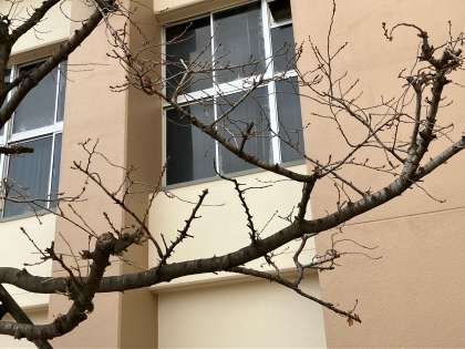 1年生が植えているチューリップ、桜・・・春まで耐えています。