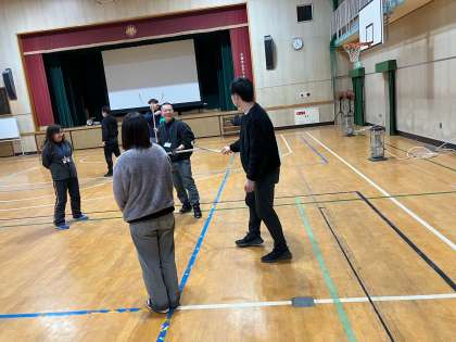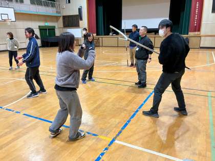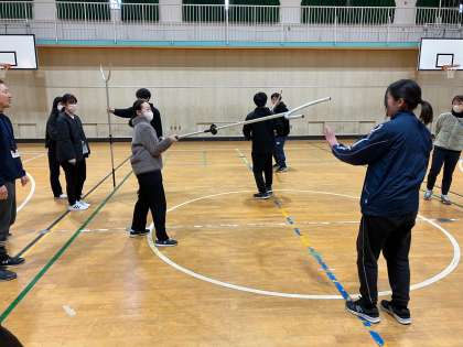 体育館で、「さすまた」の使い方の訓練を行いました。