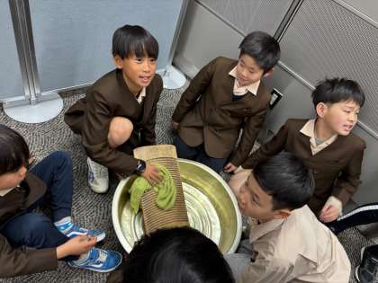 今昔館で昔の道具の体験学習をしています!