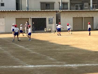 つまり子どもたちには、大空の下で思いきっり遊ぶことが大切だったのです。緑地や広場また公園などに行くと、子どもたちは時間を忘れて動き回ります。身体の成長だけでなく脳の成長にも必要だったのです。学校では、子どもたちの体力低下を改善するだけでなく、この脳を活性化するために、研究教科を「体育科」にし、表現運動やリズム運動を行っています。ぜひご家庭でも、買い物や散歩、公園で時間を過ごすなど屋外での時間をとって頂けたらと思います。