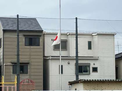 学校では、弔意を表明して、昨日全校朝会で校長講話で、本日半旗、14:46に黙とうをします。