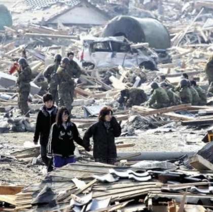 地震による津波により、たくさんの方がなくなり、家や建物が壊されました。