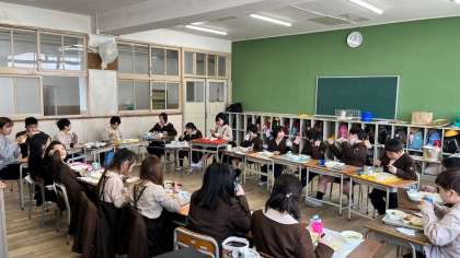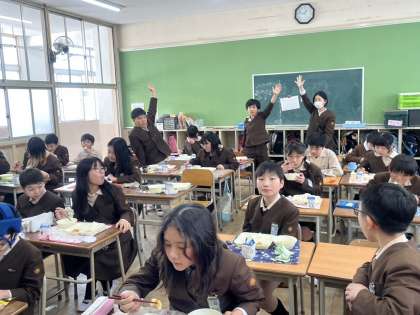 4年2組は、みんな向かいあって食べました。会話もはずみました。