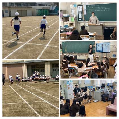 漢字の練習、50メートル測定、社会や聴力検査がありました。