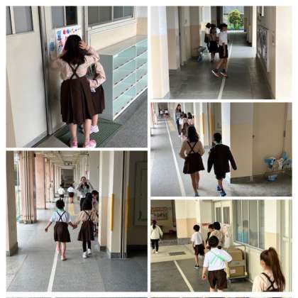 2年生が作ってくれた案内表示を2年生が1年生を案内しています。ちょっぴりお兄ちゃんお姉ちゃんになっています。