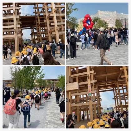 ミャクミャクや大屋根リングを見ながら、目的のパビリオンに向かいます。