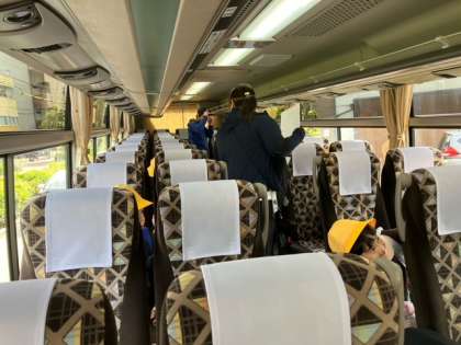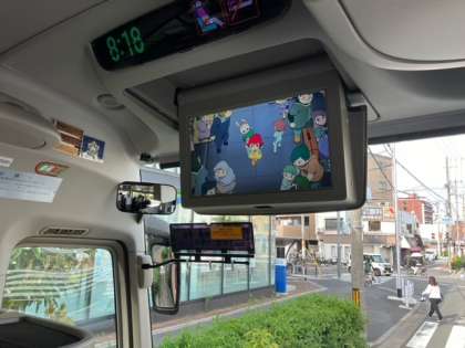 バスの中では、ビデオを見ています。