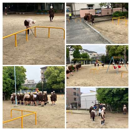 本日より毎週月曜日全校朝会後に公園清掃を行います。当番制でおこないます。本日の当番は6年生です。