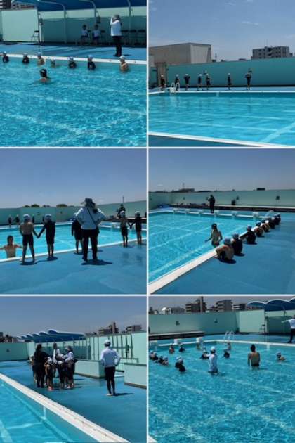 1年生のプール開きです。ルールやシグナルサインなど基本中の基本を学んでいます。