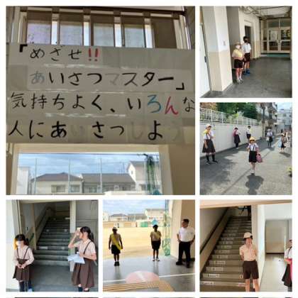 今週は「あいさつ週間」です。各階段に運営委員会が立ってあいさつします。