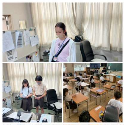 本日の全校朝会は、Teamsで各教室で行いました。