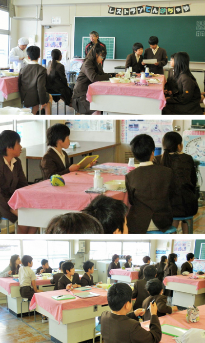 楽しいシェフの「食に関するクイズ」などで、いつもと違う雰囲気の給食をいただきました。