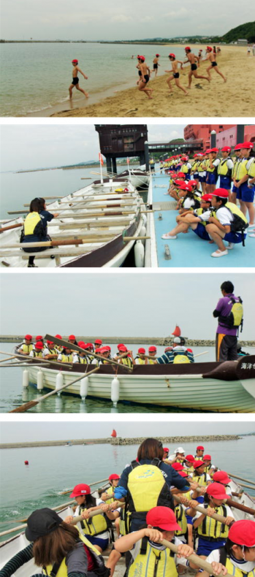 初夏の陽気に恵まれ、カッター訓練や砂浜でのリクレーションなど海辺での楽しい学習の1日でした。
