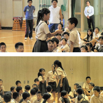 今朝は、体育館で「天茶っ子集会」を行いました。