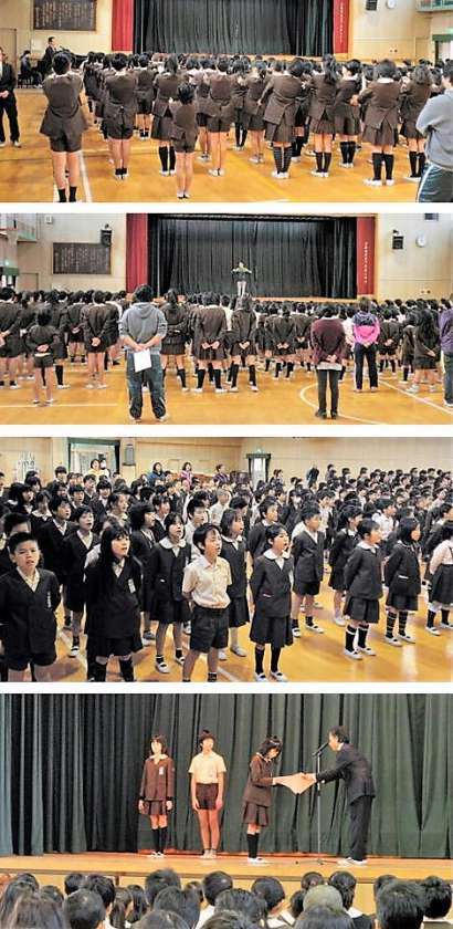 終業式では、全員が立派な姿勢で元気に校歌を歌いました。