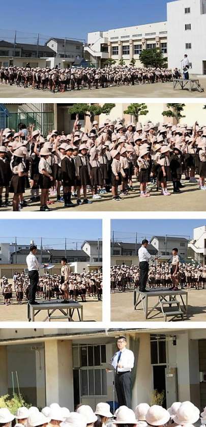 校長先生から、5月3日に開催された「大阪市陸上競技フェスタ」で入賞した児童に賞状が渡されました。