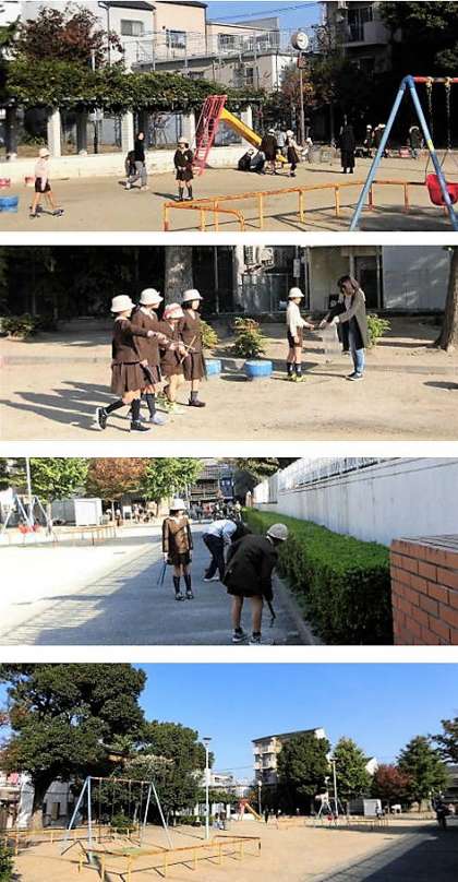 今朝の公園清掃は4年1組が担当でした。