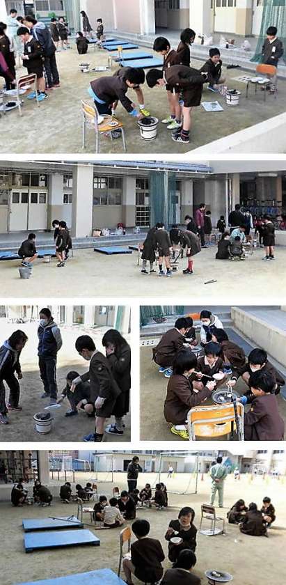 本日は、3年1組が運動場で「おもち焼き体験」をしました。