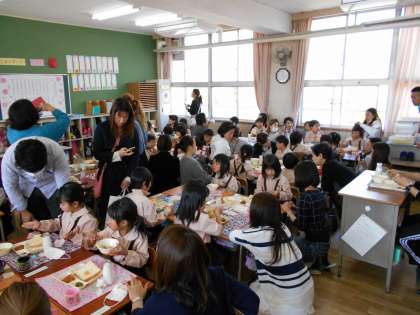 1年生は入学して2週間が過ぎました。最初はどことなくぎこちなかった子ども達もすっかり学校に慣れ、休み時間には元気に運動場で遊んでいます。初めての参観は給食参観でしたが、お家の方が来られ、とても嬉しそうでした。