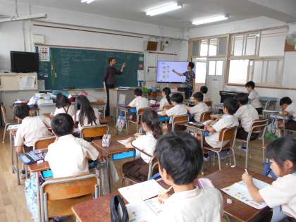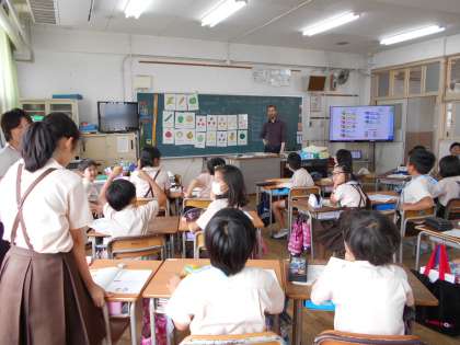 ダン先生と担任がチームとなって、英語の学習を進めています。