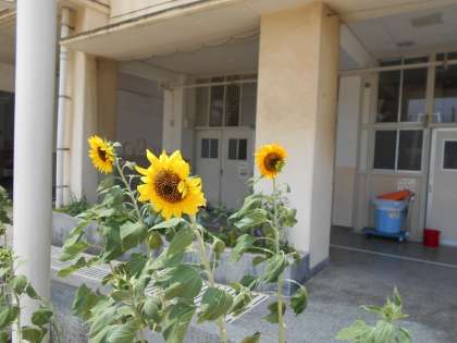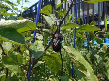 猛暑日が続きます。学習園では夏の太陽をいっぱい浴びて、トマト、ナスが実をつけ始めました。また、ひまわりも咲き始めました。