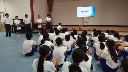 天下茶屋中学校生徒会の役員のみなさんが来られて、11月に中学校で開催される部活動体験に向け、それぞれのクラブの紹介をしていただきました。お兄さんやお姉さんの活動のようすを聞き、友だちで相談をしながら、体験する部活動を決めていきます。