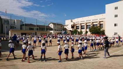 全体練習2日目は、大玉運びと全校演技の練習をしました。全校演技は地域の踊ろう会の方々に「ドンパン節」と「河内音頭」を教えていただきました。「河内音頭」は足の運びが難しいですが、先生方の踊りを見本に何とか踊れるようになりました。当日をお楽しみに!