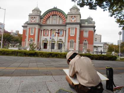 今にも雨が降り出しそうでしたが、中之島にある中央公会堂へ写生会に出かけました。