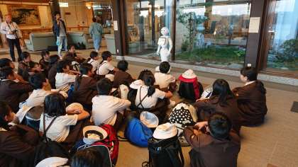 宿舎のみち潮に予定通り16時50分頃に到着しました。開舎式では、ペッパー君にむかえていただきました。