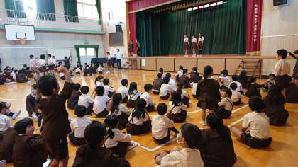 「パ」「ン」「ダ」⇒「パンダ」など3音まではたくさん手が上がりましたが、それ以上はとても難しかったです。来週も楽しみです!