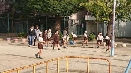 今週は3年1組が当番です。保護者の方も協力していただき、公園清掃に励みました。