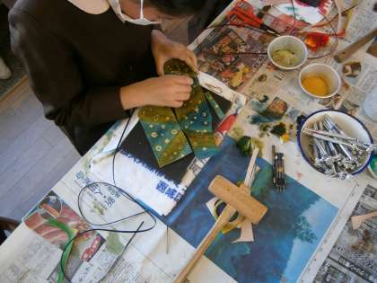 一人一人作りたいペンケースの色を考えながら頑張って作っています。