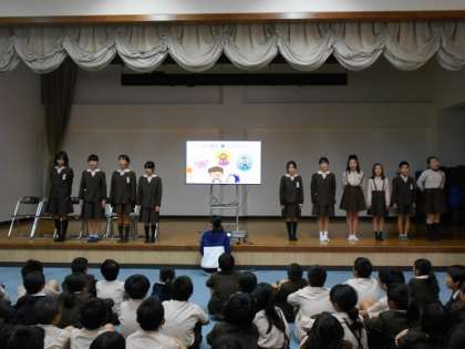 6時間目に、学校医の先生方、保護者の方々にも集まっていただき、「睡眠」をテーマとして、学校保健委員会を開催しました。保健美化委員会のメンバーが「寝る時刻が遅いこと」「ゲームをしたり、youtubeを見たりする時間が長いこと」というアンケート調査が報告されました。続いて、「めざましくん旅に出る」という朗読劇を行い、ぐっすり睡眠することにより、成長ホルモンの分泌が促されることを伝えました。その後、学校医の先生に質問を通して、質の高い睡眠をとることが成長につながることが理解できました。