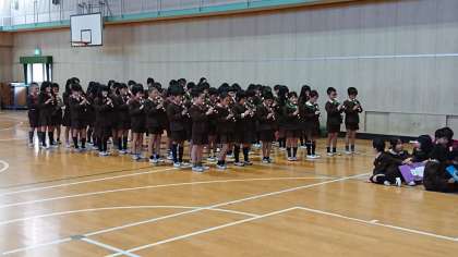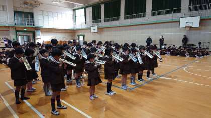 6年生の卒業をお祝いして、在校生が心を込めて感謝とはなむけの気持ちを表す機会として、「卒業を祝う会」を行いました。1年生から5年生の在校生が学年ごとに歌や演奏、群読などでお祝いの気持ちを表しました。6年生もそれぞれの一生懸命の演技を温かく、真剣に見守っていました。