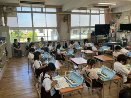 天下茶屋幼稚園の先生方が1年生の授業を参観しました。