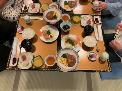 入浴も済みました。お楽しみの夕食の時間です。