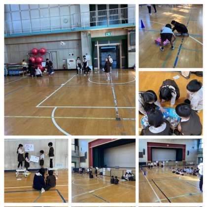 2年生がグループで作成したおもちゃで、1年生に遊んでもらいます。