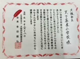 昨年行いました「赤い羽根共同募金」で、感謝状を頂きました・