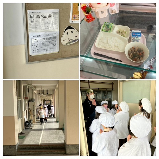 今回は、給食当番が調理室へ給食を取りに行くところをアップしました。