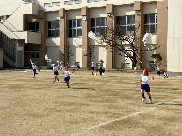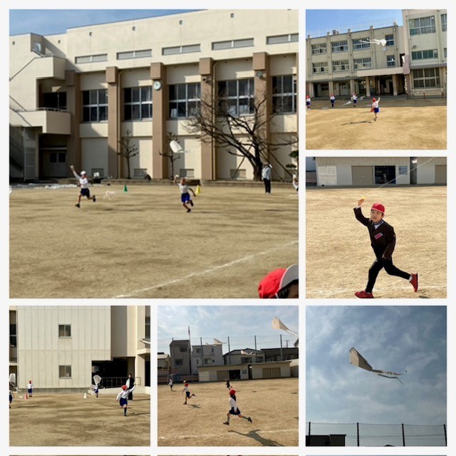 運動で走ってあげました。思った以上にあがっており、完成度の高い凧ですね!