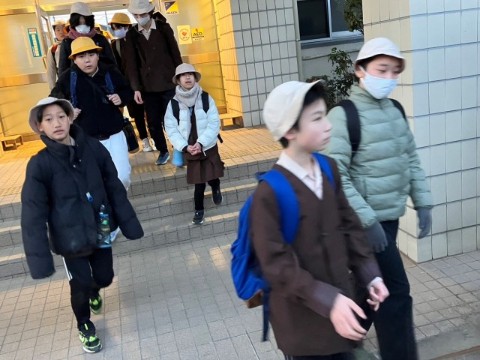 午前6時40分、外の景色がうす暗い中、子どもたちは「キッザニア甲子園」に向けて出発しました。