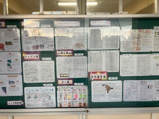 冬休みの「自主学習コンテスト」の各賞の作品を、職員室の前に展示しました。