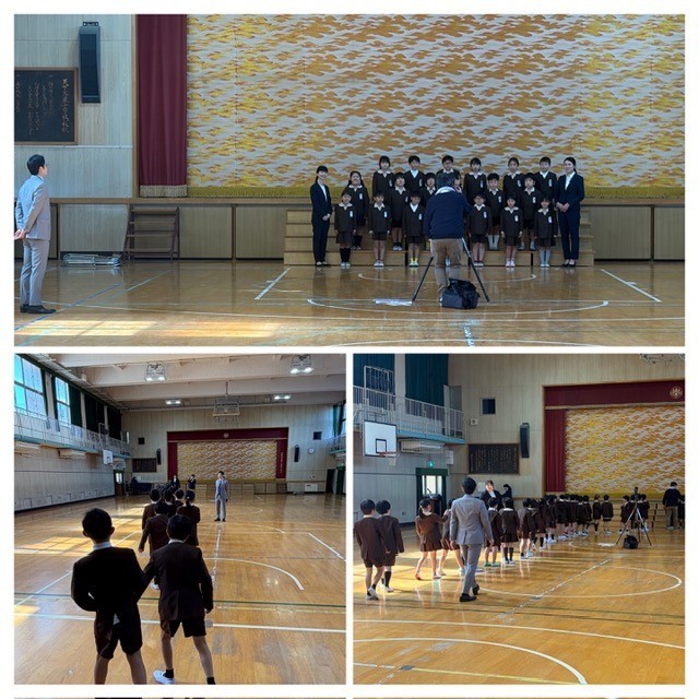 本日は、学級写真の日です。新しい担任の先生と担当の先生と一緒に写真撮影を行います。