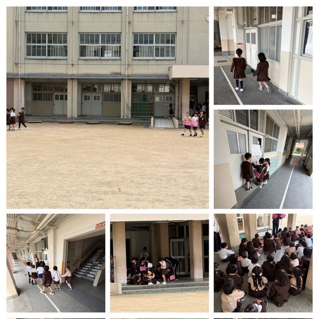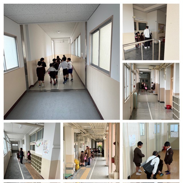 他の学年は、授業中なので「静かに」行動することを2年生が1年生に丁寧に教えながら、行動しています。
