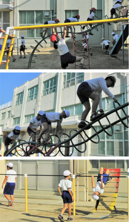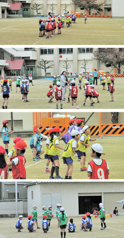 体育館が工事中のため、雨の日は体育実技ができません。 今日は朝から運動場で子ど...