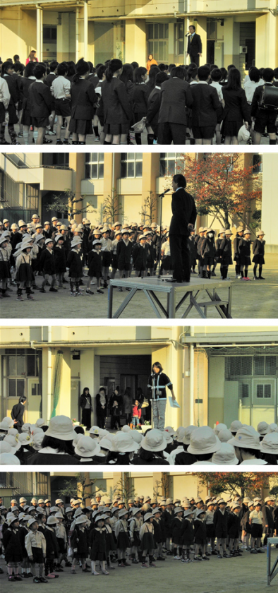 今朝の児童集会は、天茶っ子班らに分かれて、運動場の各ポイントに示されたクイズを...