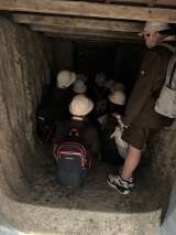 防空壕の模擬体験をしてます。