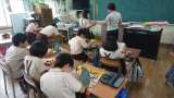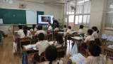 1年生の国語の授業です。先生の読む文字を目で静かに読んでいます。頭の中では「かい...